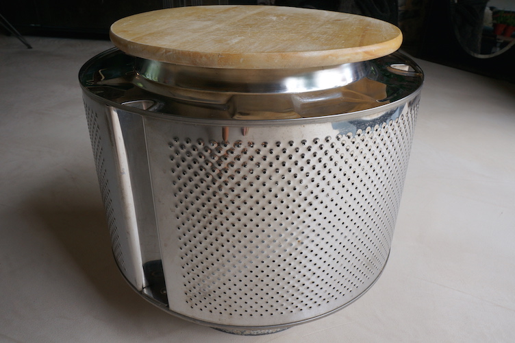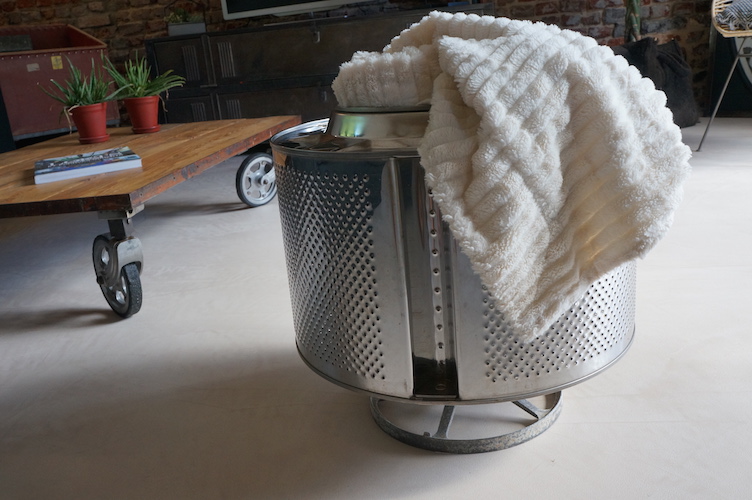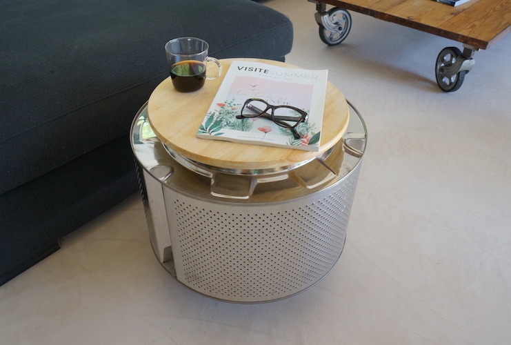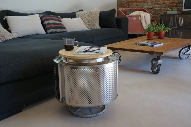Bout de canapé ZOÉ. Bout de canapé sur pied en inox et plateau bois.